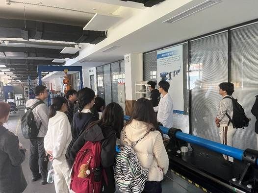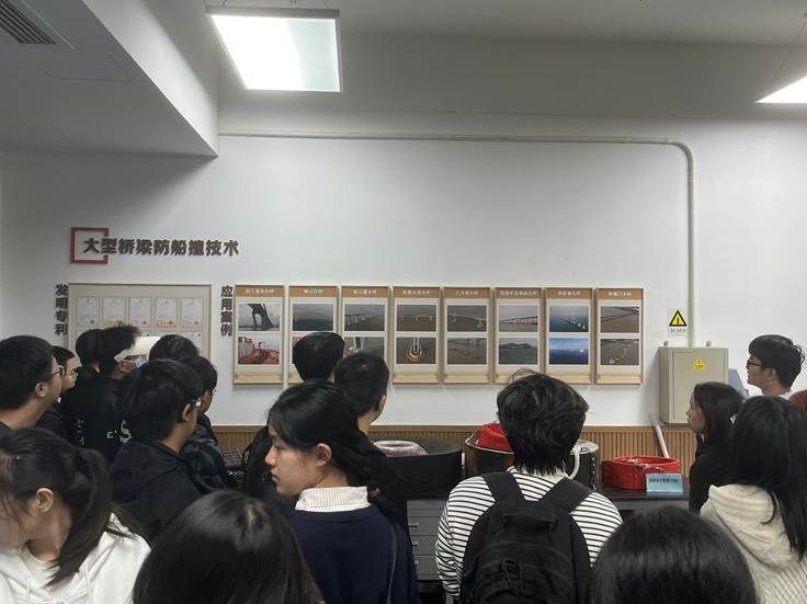 在材料与结构冲击性能测试实验室,讲解员重点讲解了关于大型桥梁防船撞技术的发明专利和具体应用案例。通过生动的实例,同学们了解到力学在工程安全中的关键作用,例如如何通过视频AI技术优化桥梁防护设计,减少船舶撞击风险。这些贴近生活的应用,让抽象的理论变得鲜活而实用。