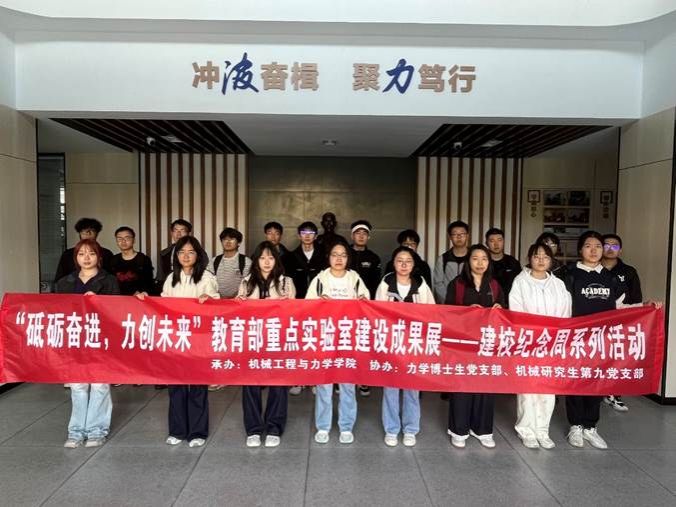 2025年10月29日,在宁波大学39周年校庆的热烈氛围中,我院举办“砥砺奋进,力创未来”教育部重点实验室建设成果展—建校纪念周系列活动,活动吸引了阳明学院25级力学专业的大一新生、机械工程研究生第九党支和力学博士党支部30余名学生代表参与,由力学博士生党支部王博士同学作讲解。