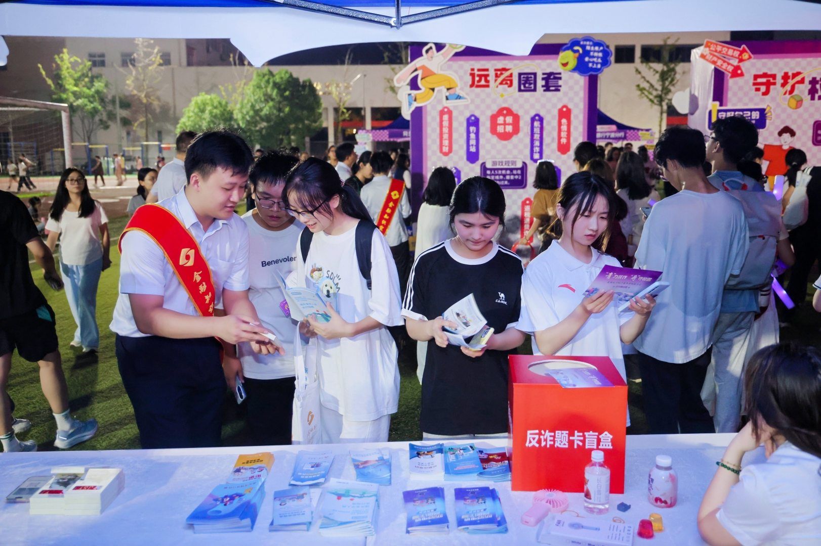 除快乐夜跑外,中国光大银行宁波分行、江苏银行宁波分行、宁波银行江北支行首次与我校携手,在活动现场特别设置了“守护权益”、“远离圈套”、“击倒套路”、“精准打击”四大趣味游戏区和三大反诈答题区。